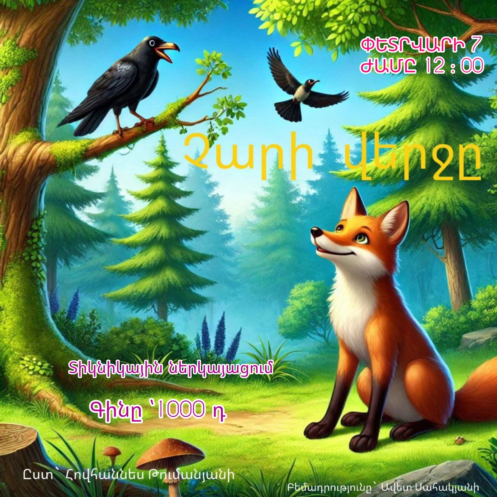 փետրվարի 7, Շաբաթ, 12:00 - Տոմսերի արժեքը՝ 1000 դրամ